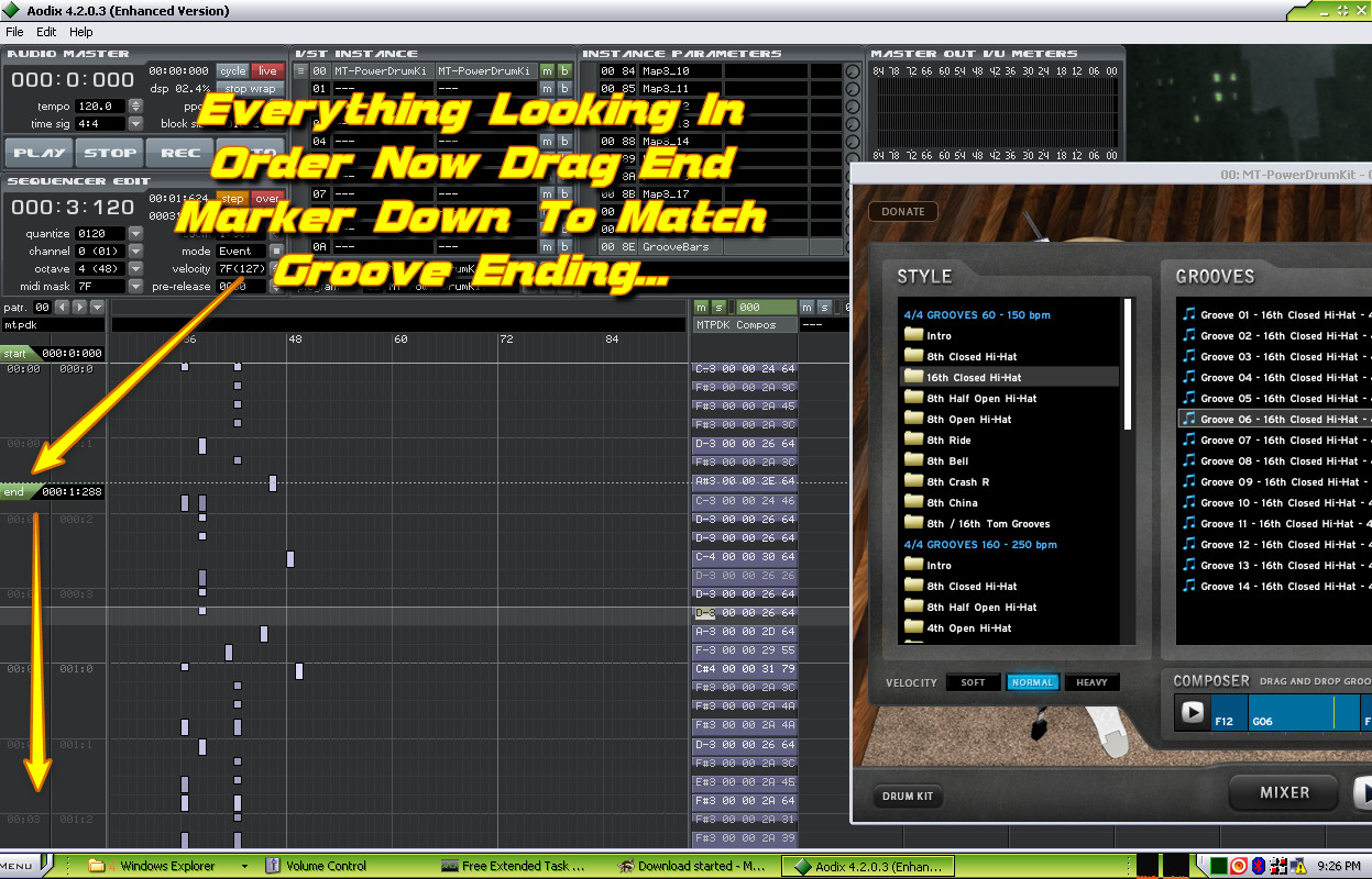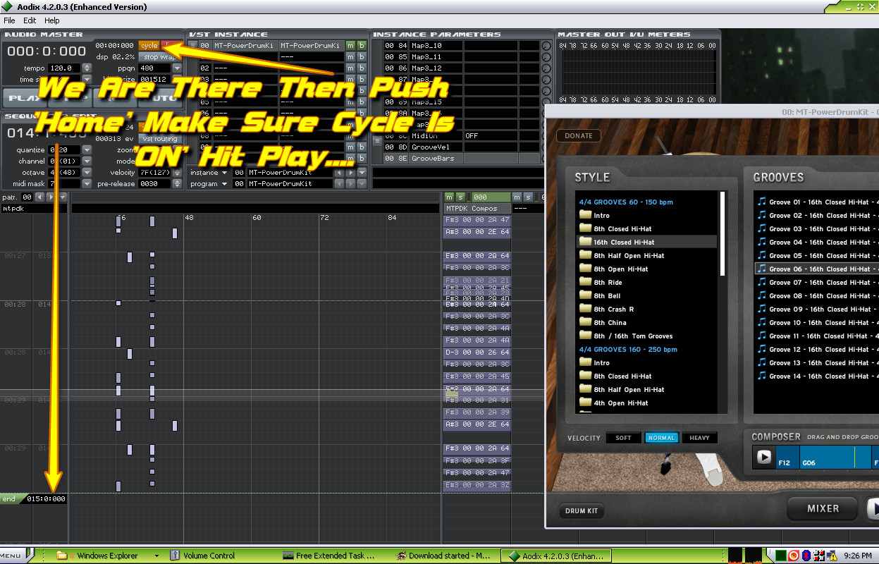 The actual sounding note is being triggered by CC-Rider.DLL into ReFX Beast… It passes notes/audio so can be used this way not a necessity here but it has good feature that might come in handy as song progresses as it converts any VST parameter automation into MIDI CCs for whatever plugin it is attached to… So in Aodix you could knob tweak a VST parameter recording such & hook it into say CC#1 which is modulation…