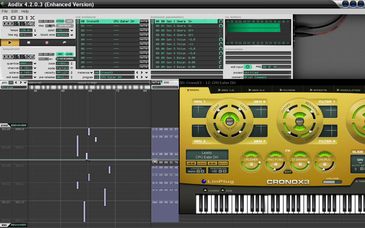Being a machine hookup tracker he also improved that viewport so it’s easier to see pins & more… MIDI plugins inside Aodix interplay with VSTi & VST that have MIDI ins-outs seamlessly…
