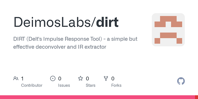 DIRT - Delt’s Impulse Response Tool. I started writing a simple command line deconvolver / sinewave sweep generator a few days ago. It’s actually pretty usable as of now, and i’m getting really good results with it.
