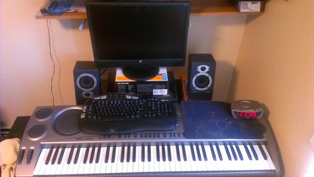 The radioshack 76 key casio clone is a bit cumbersome but, functional and it was FREE - a guy 400 miles away was cleaning out his storage container, he gave it to one friend, that friend gave it to me and I found an adapter for it. All of my sound equipment is second hand from other friends and musicians that upgraded over the years - the studio pro monitors were free, the m-audio 1010lt sound card, I bought off the frontman of CRL studios for $60 and I’ve since had to return to the forums to figure out what driver version I used along with settings because the SID was corrupted on this machine and I had to do a full reinstall with new partitions - the machine recognizes the sound card but now the drivers don’t want to bridge the gap… all of the current pc hardware is gear that I built back in 2006, fairly bare bones, I had to upgrade my video card twice; once in 2009 when the on-board video controller burned out and most recently in the last couple of weeks since the video card’s heat sink & fan failed; the card became so hot that it began to melt - the only reason I noticed is because my screen began flickering and I thought I smelled blue smoke…