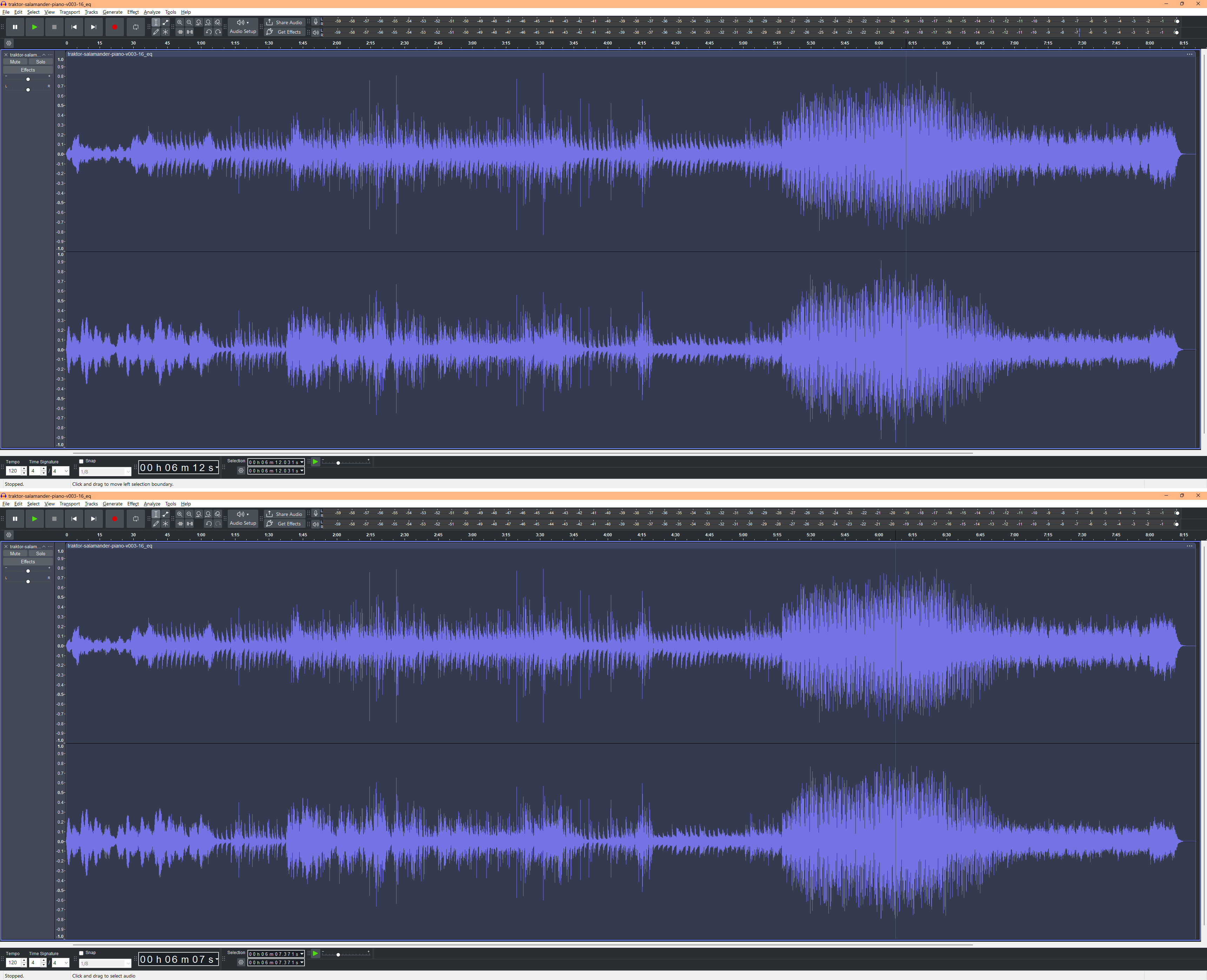The image is a real example. You can see several peaks in the thick ball on the right, which have been subtly reduced, leaving the rest intact. This way, the entire audio waveform can easily be boosted by up to 3dB with an amplifier.
