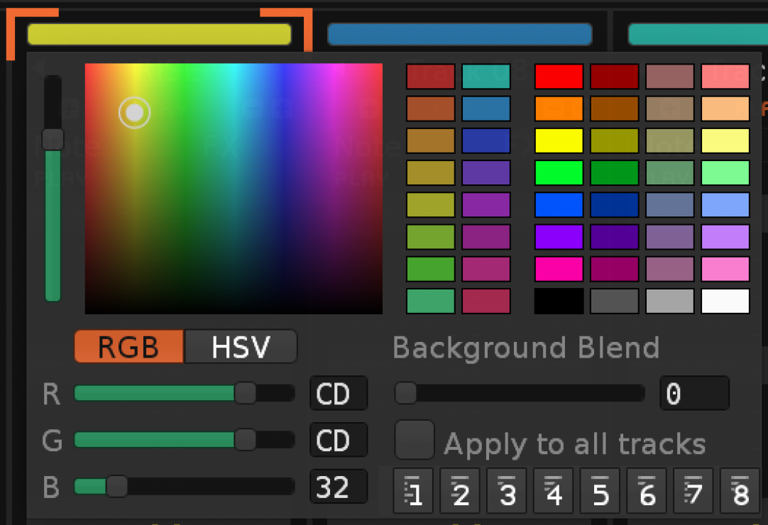 Now when I create a new track I need to create colors from scratch.