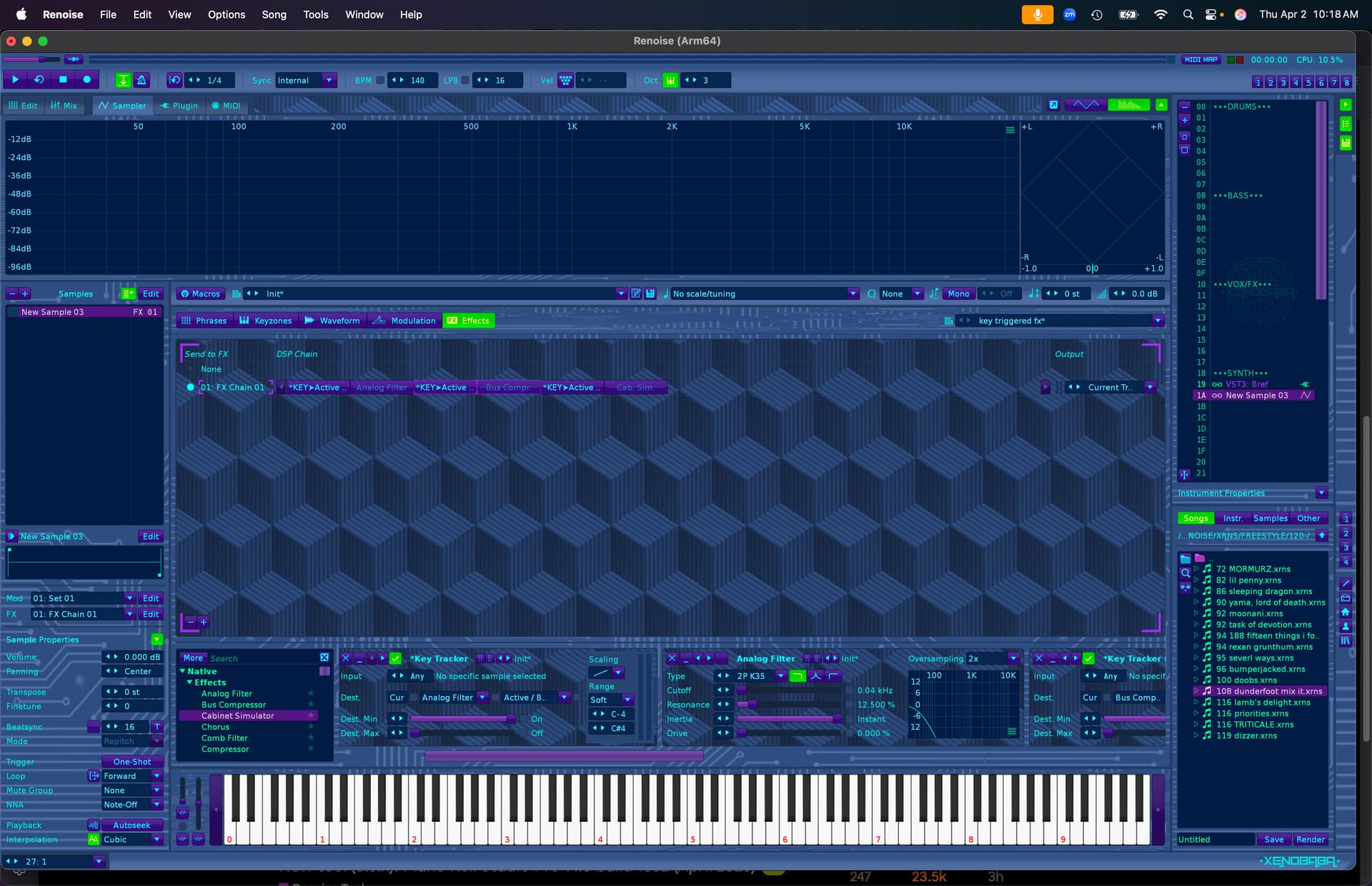 Press a key in Renoise and have individual FX in a group bus turn on/off instantly — no automation, just a key trigger