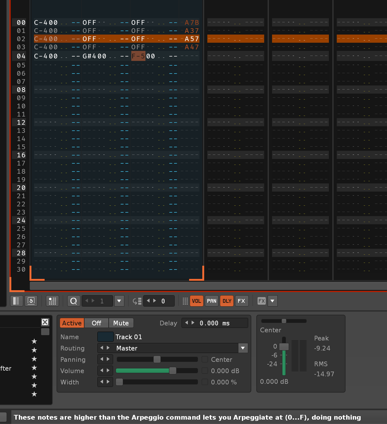 And then get an output for the Arpeggio command 0Axy, which represents