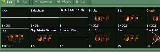 Here Spaced Clap has just been solo’d, the whole Kick group remains active: