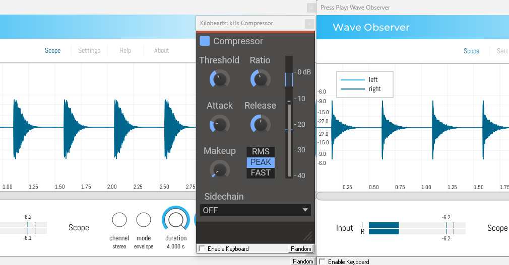 The original was gain matched by ear, so the new peaks were excess on top, the new example was peak matched via the LR readouts on the scope. So just different perspective on same behaviour. First has more makeup gain.