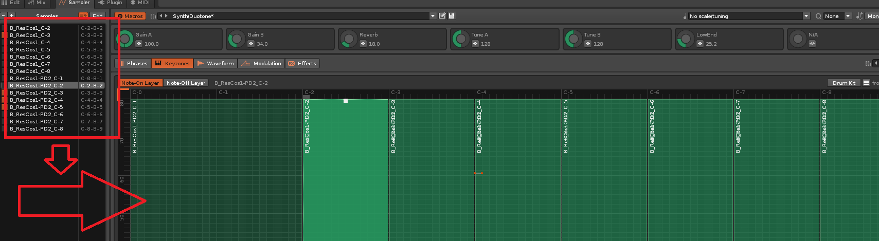 I’m making basic melodies with the default Duotone.xrni synth instrument and while notes between C-4 and C-5 all sound the same, the next note down from there (B-3?) sounds drastically different for some reason. Is there some way to fix this or a workaround? I tried transposing the instrument down an octave and then playing up an octave but that seems to sound wrong too.