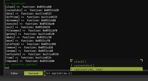 Ok, when I look at the functions of os “capture” is not listed but the terminal